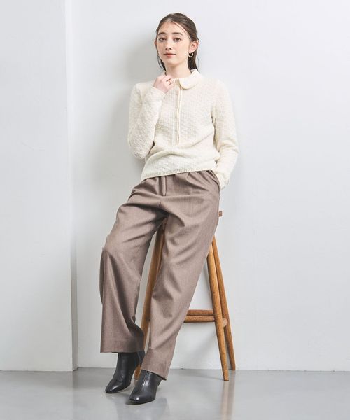 ニットを主役に、シンプルなワイドパンツやロングスカートなどと合わせていただくのがおすすめです。