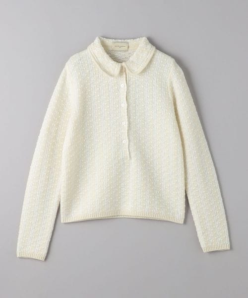 丸みのある襟元とふんわり柔らかな素材感が、可愛らしいさを演出するニット。