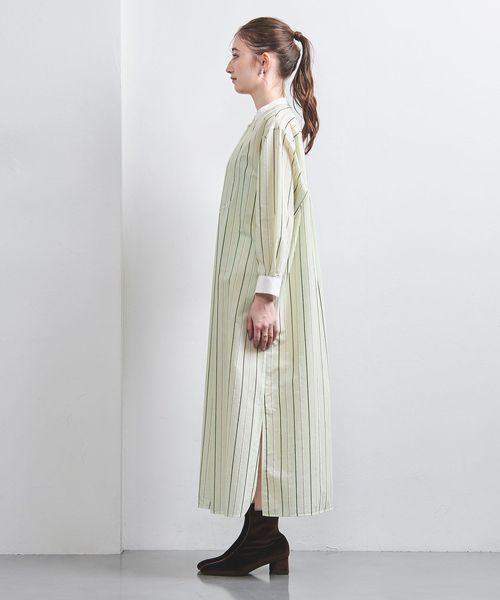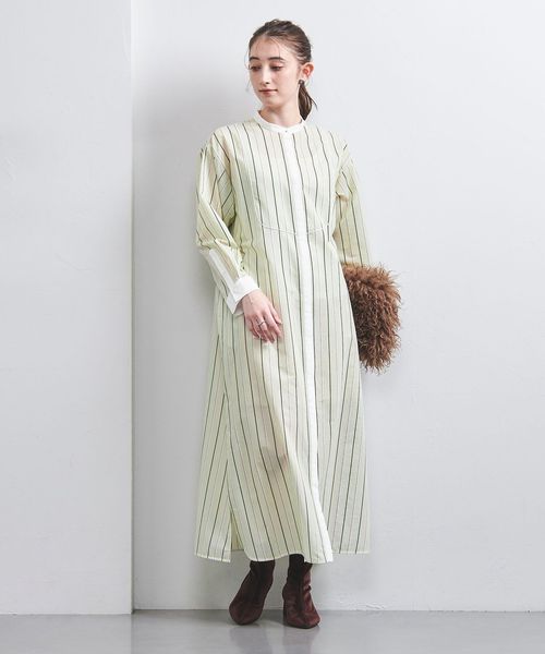 インポート生地ならではの配色とクリーンな印象のシャツワンピース