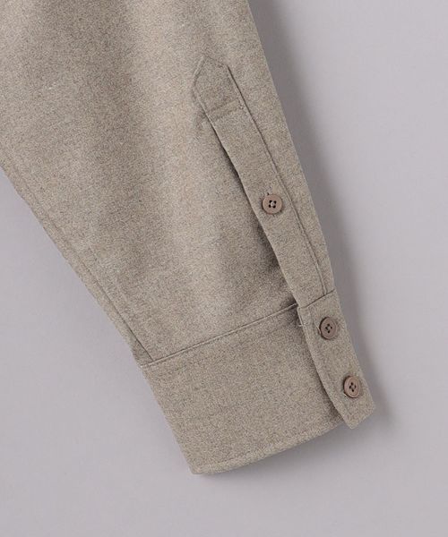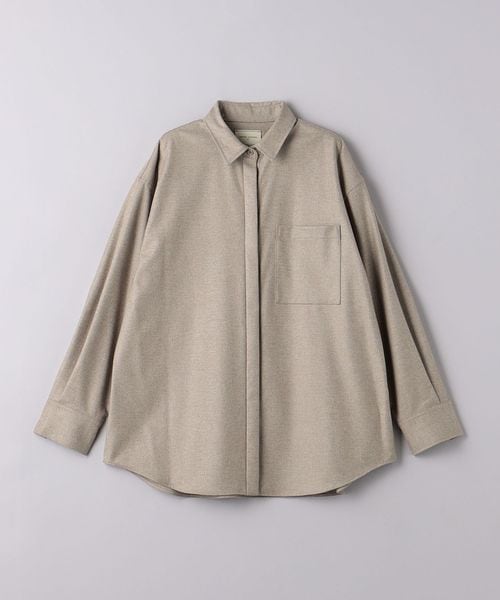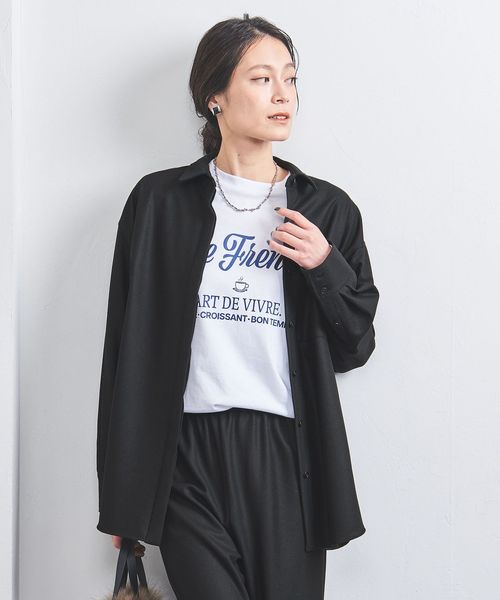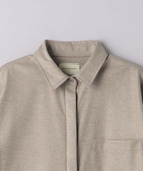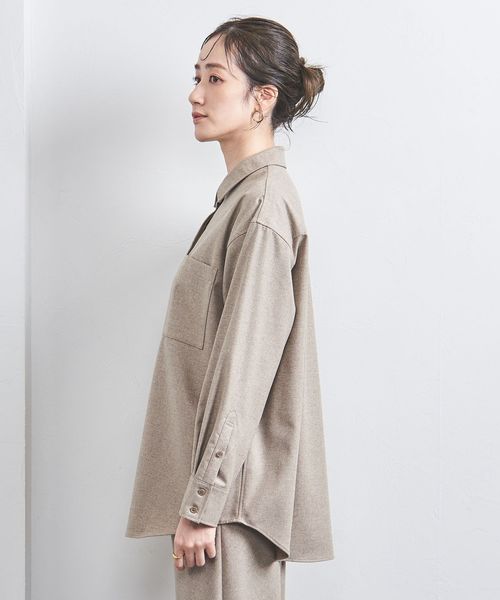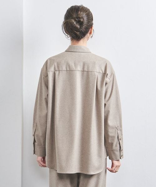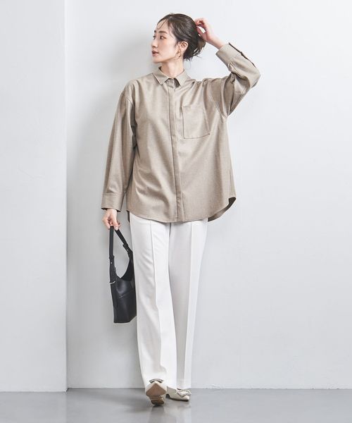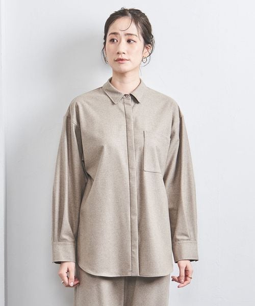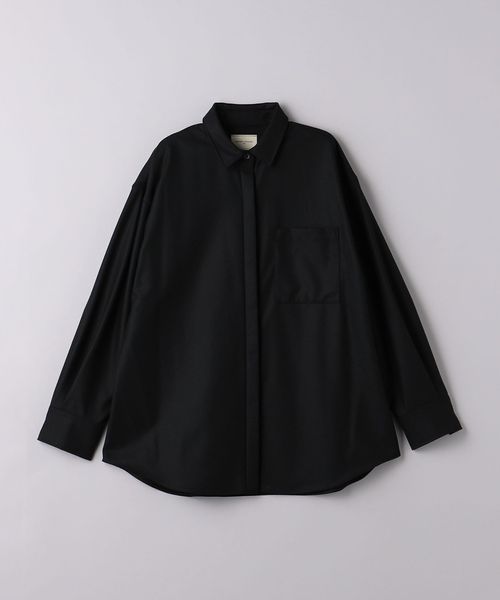 メンズライクな型でも素材の上質さと柔らかさにより女性らしさも感じるシャツブラウスです。