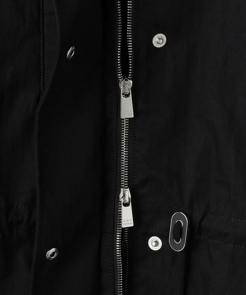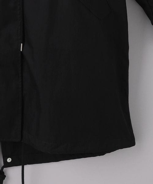特徴的なフィッシュテール仕様の裾や、肘にタックを入れることでボリュームを持たせた袖はミリタリーのデザインそのままに、独特の光沢感があるナイロンコットンや、メタルの付属でTATRASらしい高級感を演出しています。
