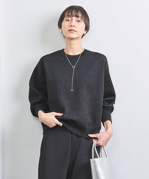 ラメ糸で華やかさとブラックカラーでモード感もプラスされたスウェット風ニット