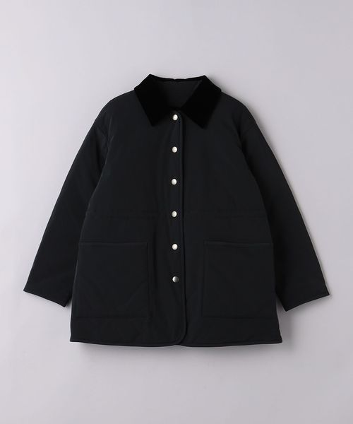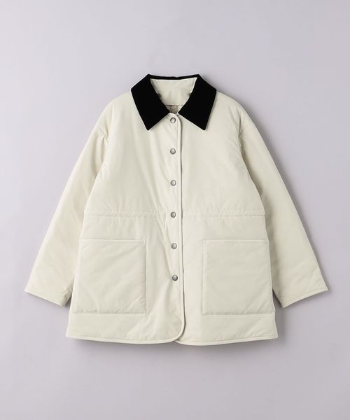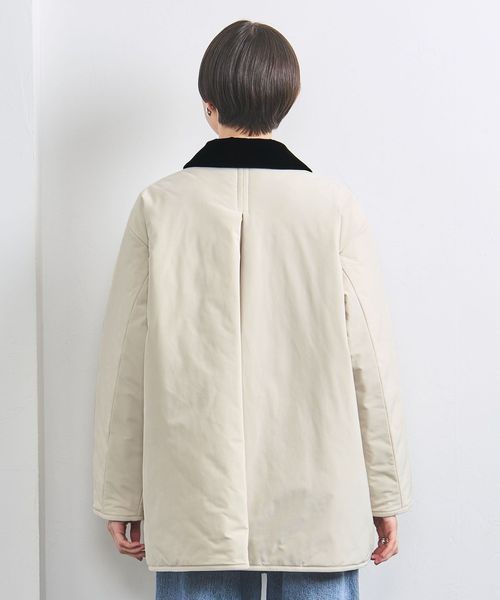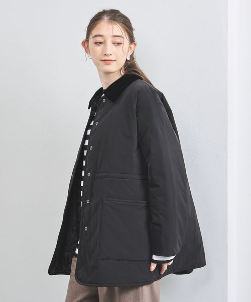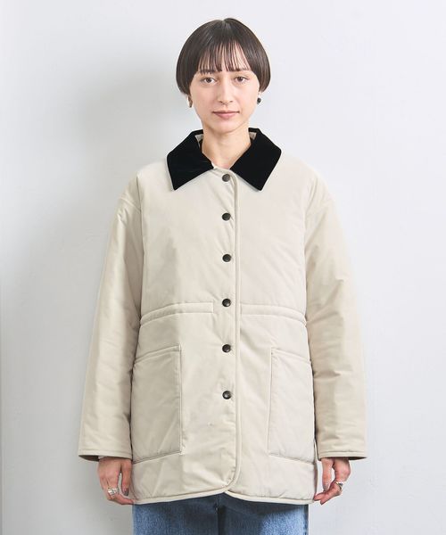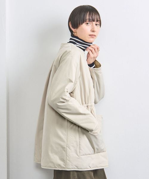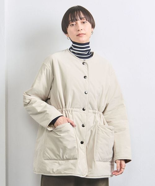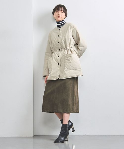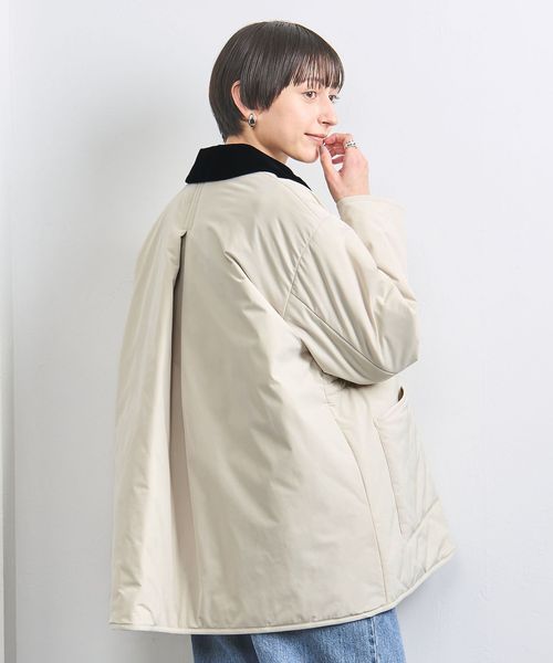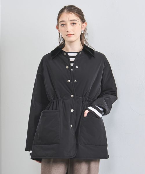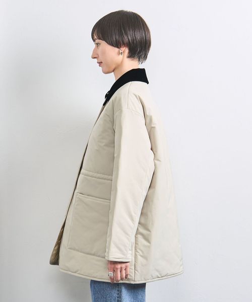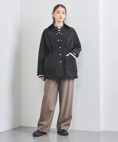 ゆったりとしたテントラインが女性らしい中わた入りのコート。