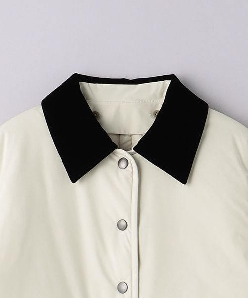 質感、カラーがコントラストになるベルベットの襟は取外し可能で、ノーカラーでも楽しめる2WAY仕様。