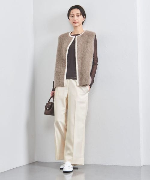 毛足の長いザックリとしたニットと合わせるのがおすすめです。
