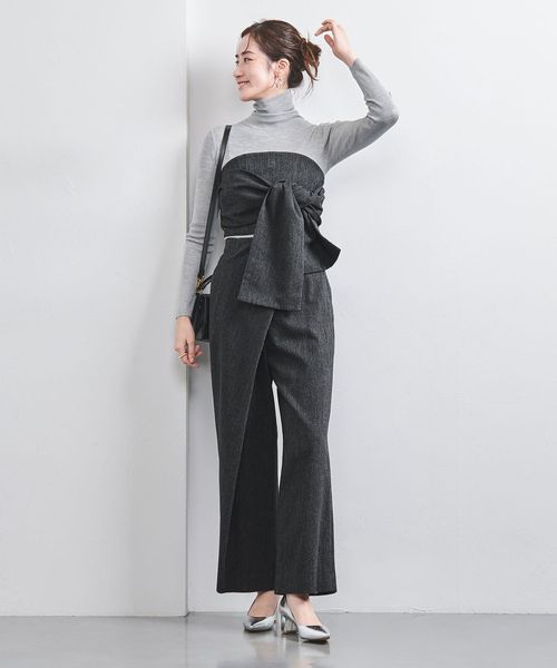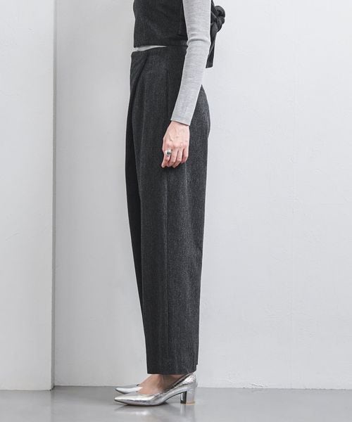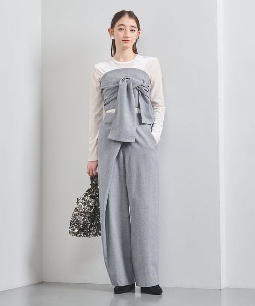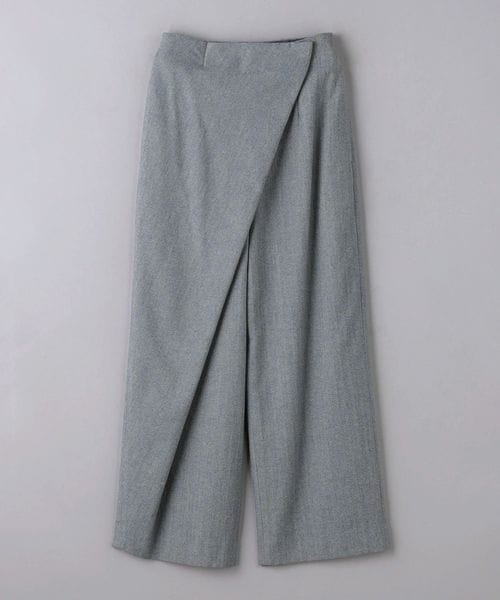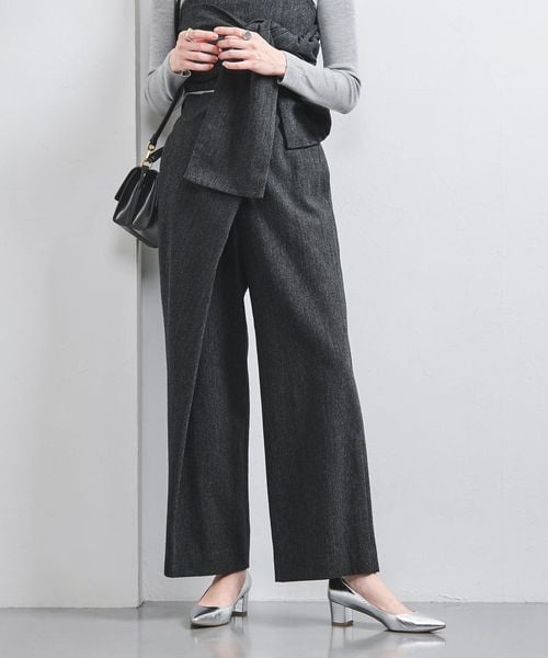 アシンメトリーのラップ風ディティールがポイントのパンツ