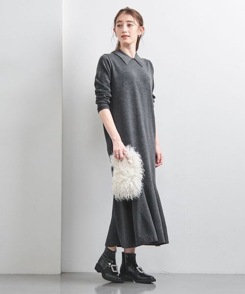 動きやすさは意識しつつ、ニットワンピースにありがちなリラックス感が出すぎないよう女性らしさのあるデザインに。