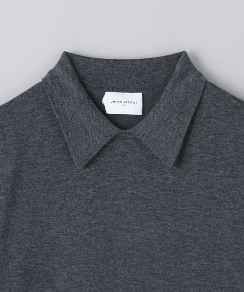きれいなシルエットに仕上がるよう、なめらかなウールにポリエステル糸をプレーティングした素材。
