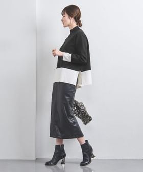 広がりのあるシルエットを活かして、ボトムスはテーパードやストレート、タイトスカートなどすっきりとしたシルエットとの合わせがおすすめです。