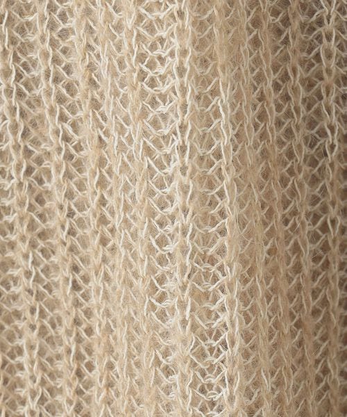 柔らかな毛足感のモヘヤ混のタムヤーンと和紙を撚りこんだ糸を引きそろえて編みたてた素材です。