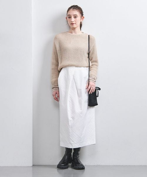ワイドシルエットのデニムや細身のロングスカートとのコーディネートがおすすめ。