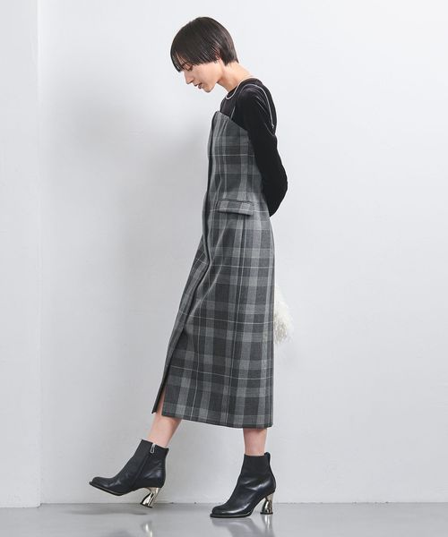 ハンサムな配色のグレンチェックが印象的な大人の辛口キャミワンピース