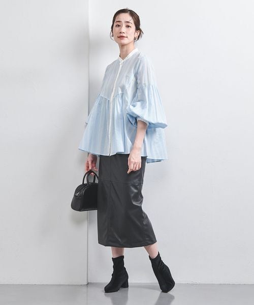 ボリュームシルエットもすっきりとしたショート丈のトップスも好バランスな着こなしに。