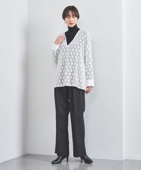 シアーな素材感と深めのVネック仕様なので、レイヤードスタイルがおすすめです。