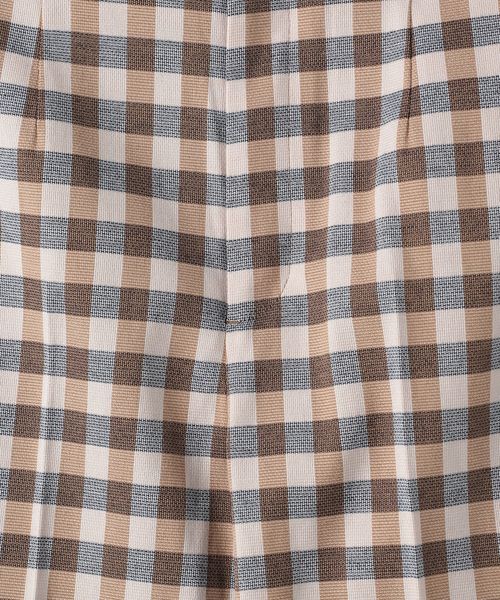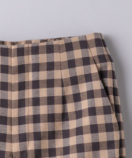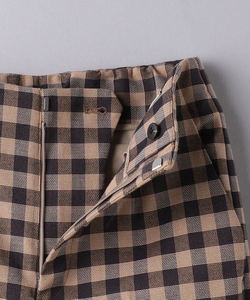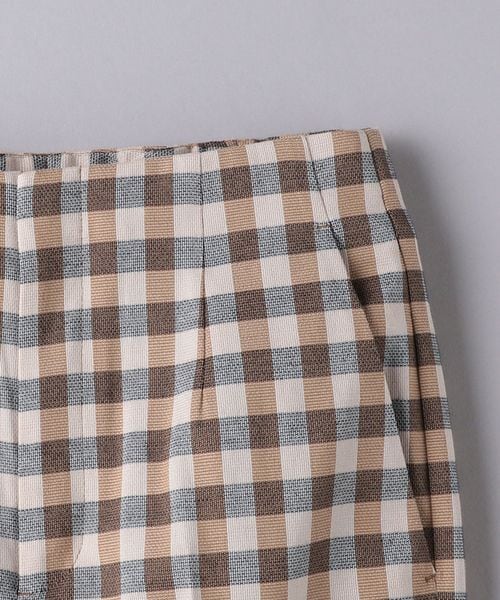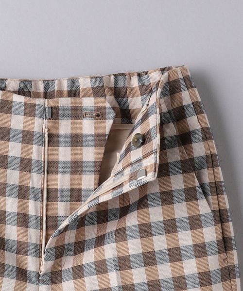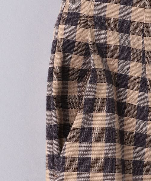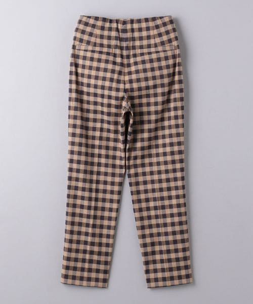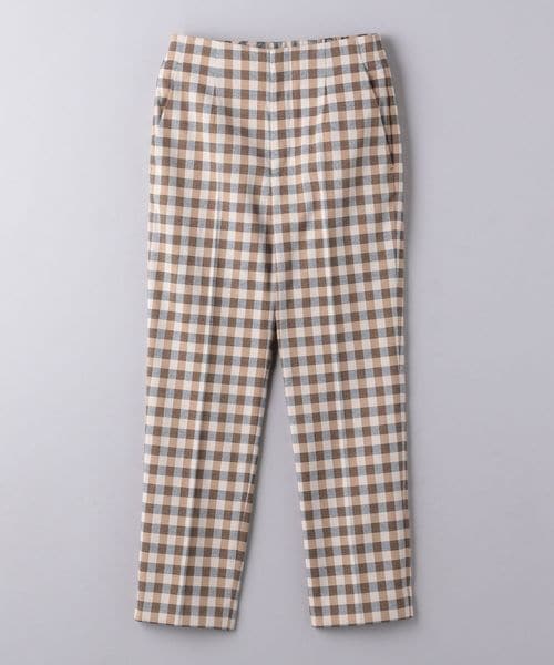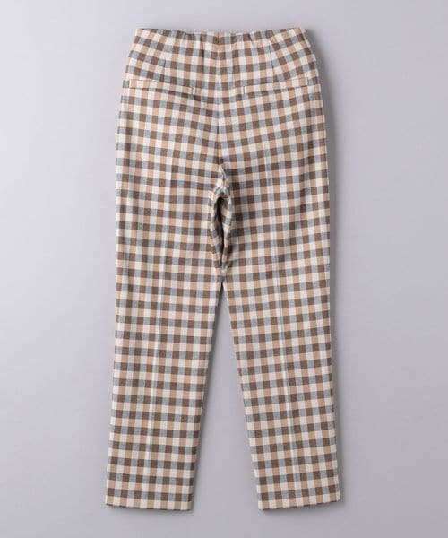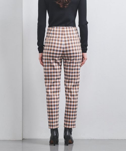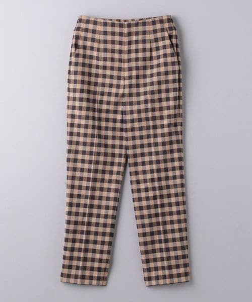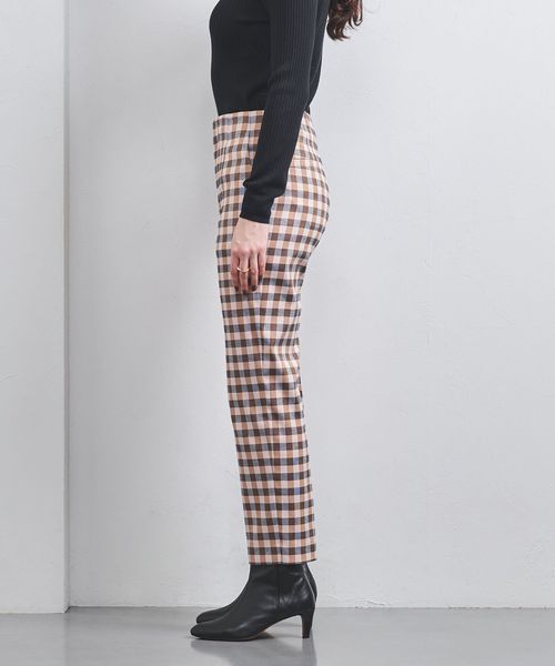 ブラウン系のシックなチェックが上品に映えるスリムパンツ