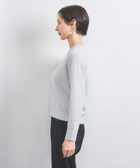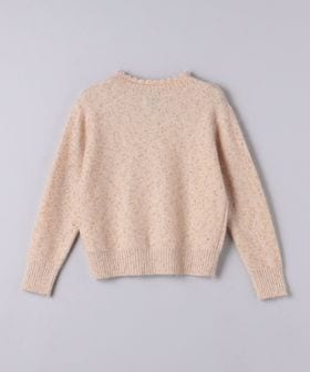 やや短めに設定した着丈で、さりげないラメ感と襟回りに施したかぎ針編みがアクセントに。