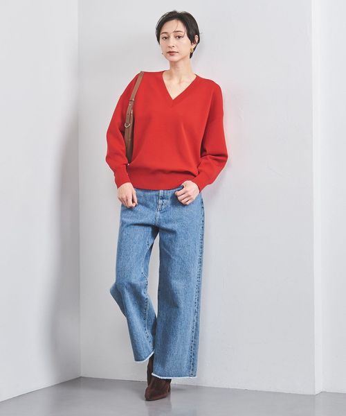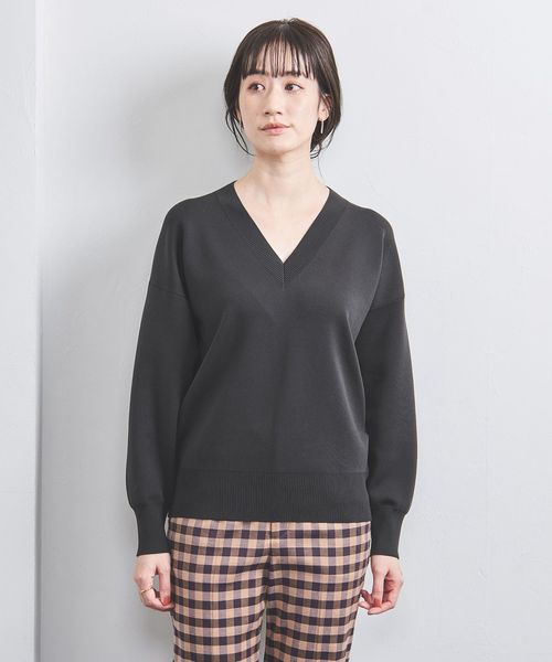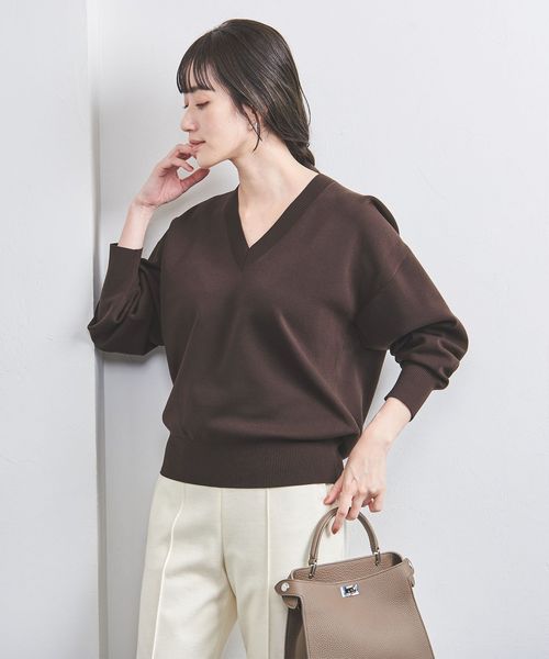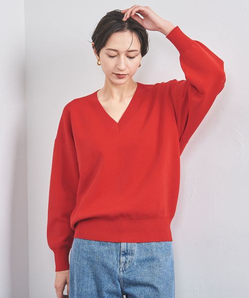 ゆったりとしたサイズ感でデコルテ周りをすっきり美しく見せてくれるドルマンシルエットのVネックトップス。