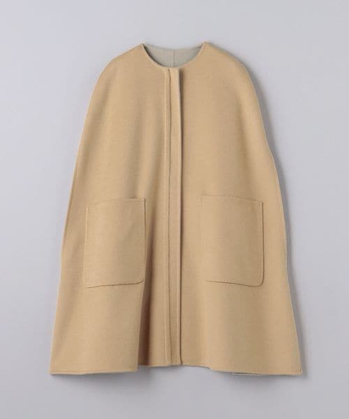 袖コンシャスやボリュームのあるインナーと合わせやすいケープデザイン。