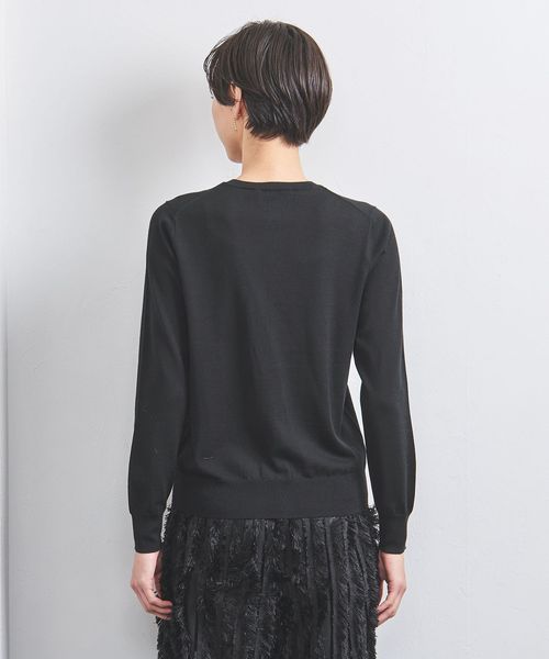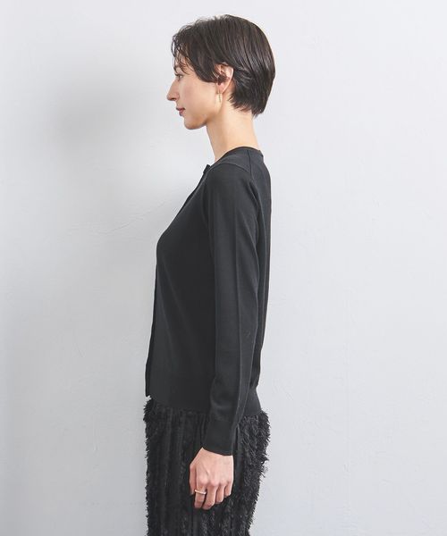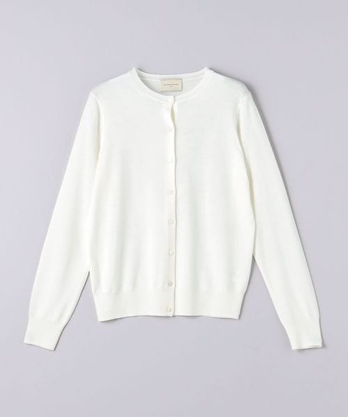 一枚着でも着こなしがしやすいコンパクトなシルエットのクルーネックカーディガン。