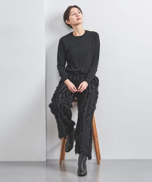 シンプルながら素材感の良さが際立つ定番のニットカーディガン