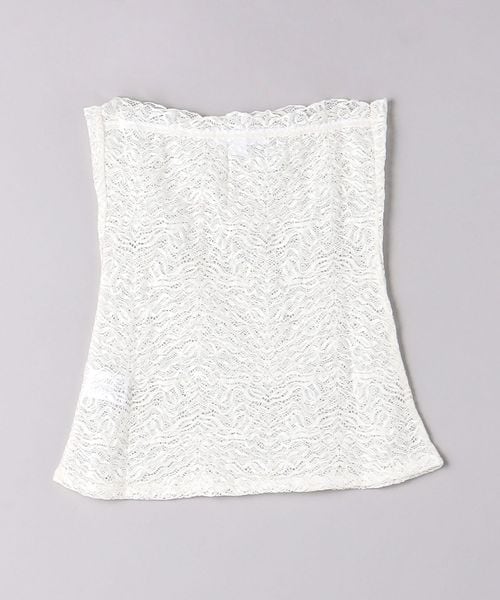 フィットシルエットのトップスの上にレイヤードするほか、ベアトップ型のアイテムの下に着用し、レース部分を少し出す着方も素敵。