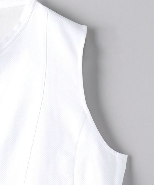 フロントのボタンを開けて羽織るように着たり、全て留めてノースリーブのブラウスのように着るのもおすすめ。
