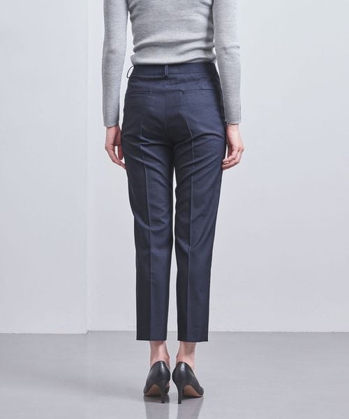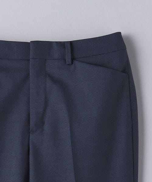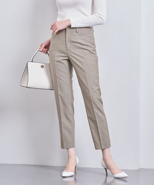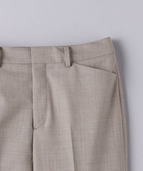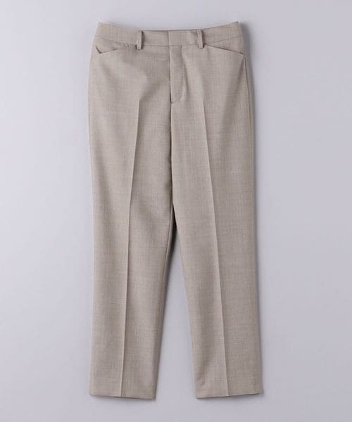 ノータックで裾に向けて細身になるテーパードシルエットのパンツ。