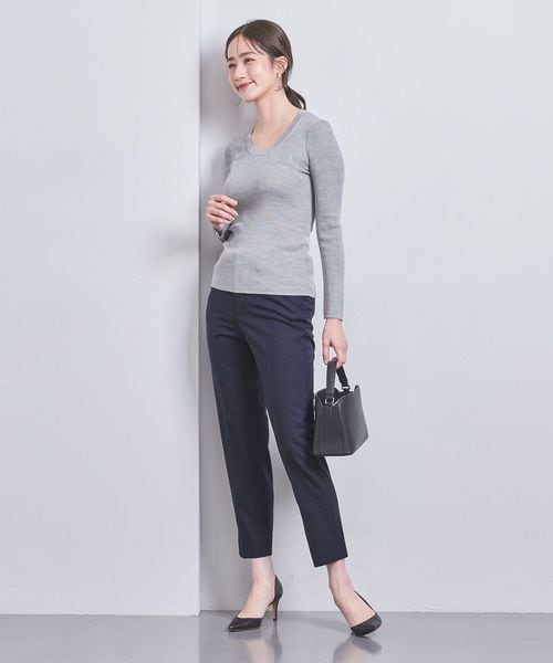 全体的に細身のシルエットで、足首がのぞく九分丈は脚をきれいに見せてくれます。