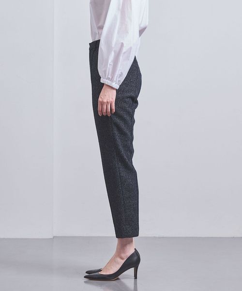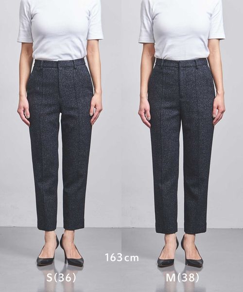 ノータックで全体的に細身で裾に向けてテーパードしたシルエット。