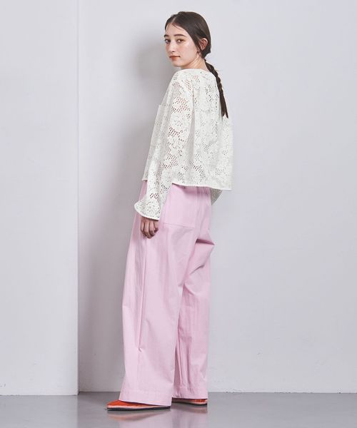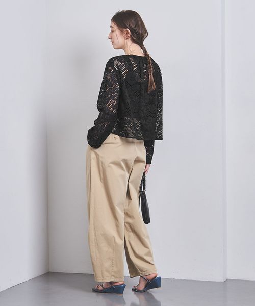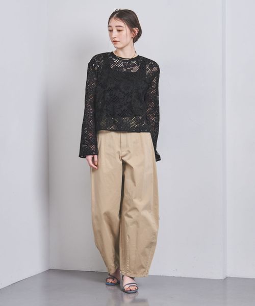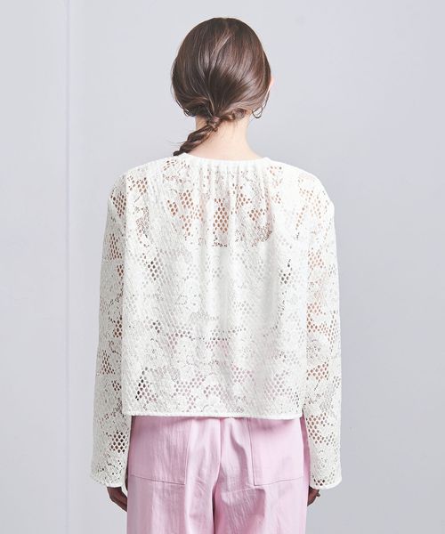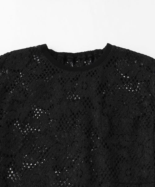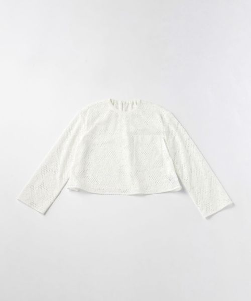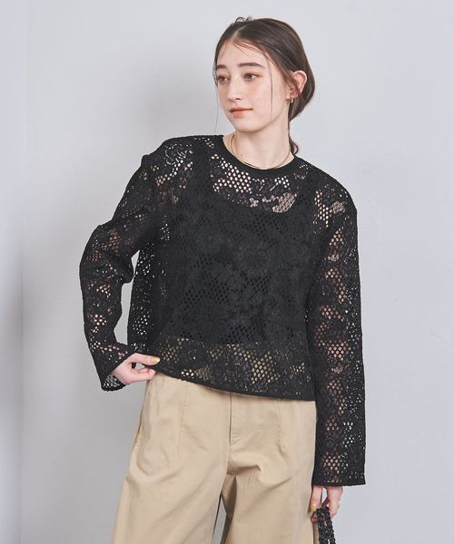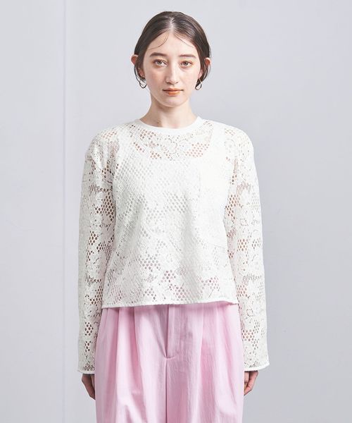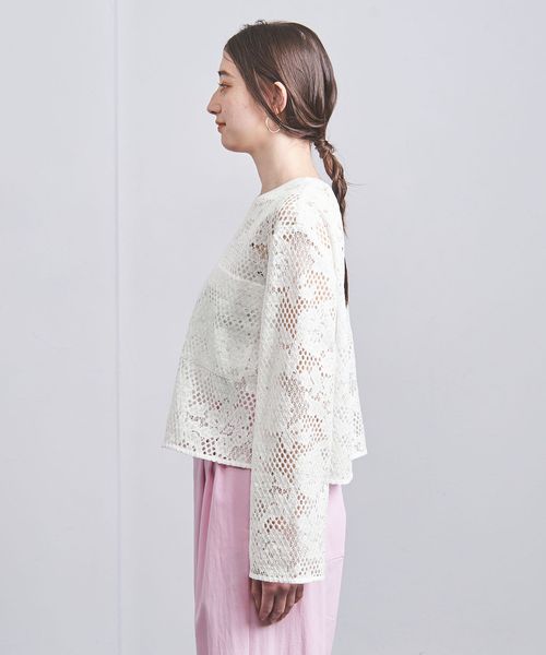 エレガントなレース生地を長袖のTシャツ型に仕立てた一枚。
