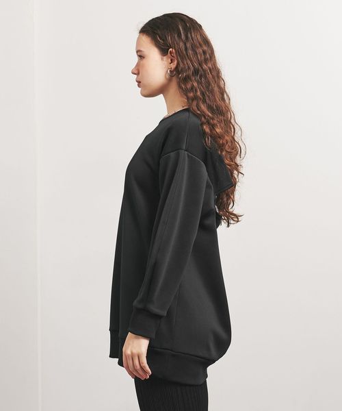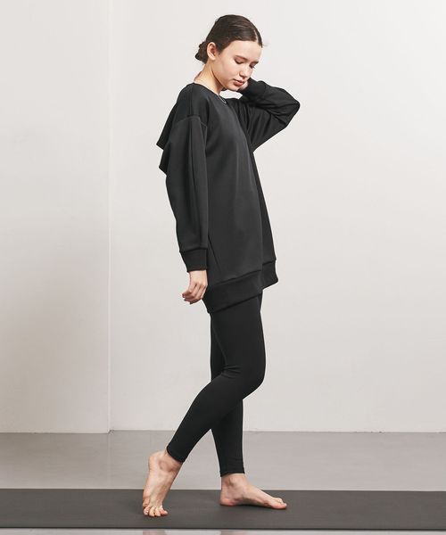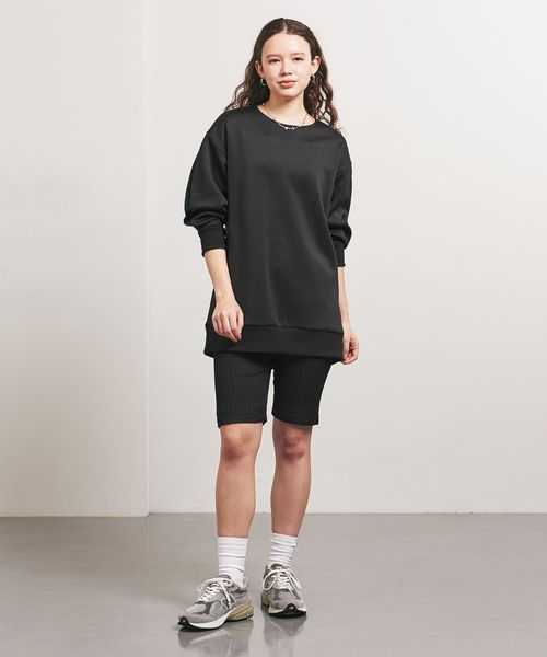 レギンスと合わせることを想定したヒップが隠れる長めの着丈がポイントで、コーディネートしやすいバランスに仕上げています。