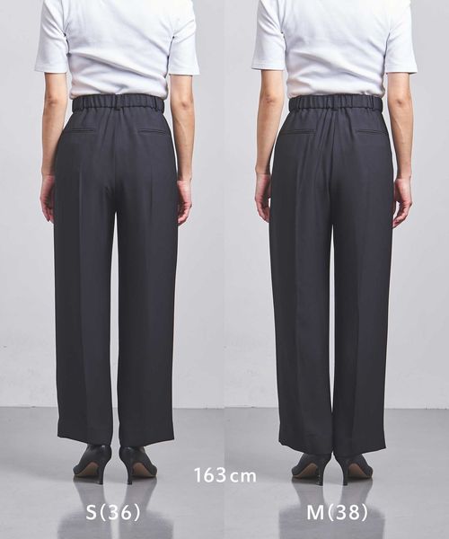 ジャストウエスト設定で後ろウエストのみ平ゴムを入れ、フィット感のあるはき心地です。