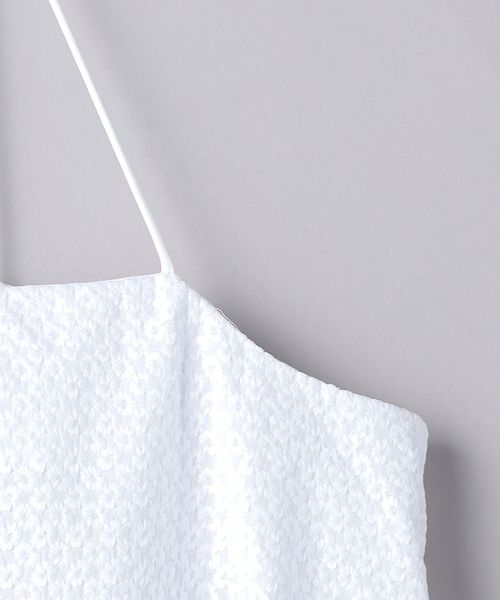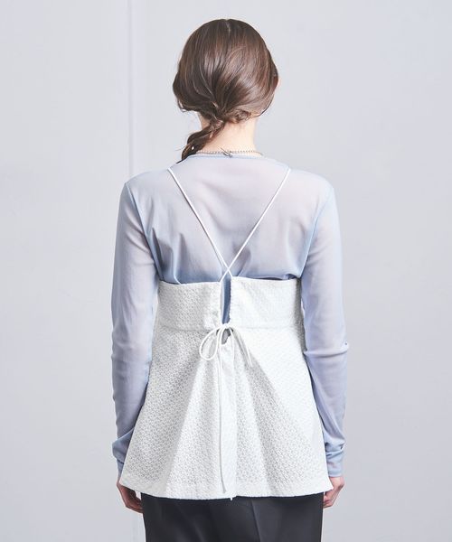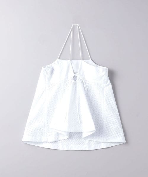 クリーンな刺繍生地に繊細な肩紐と背中のドレープがポイントのキャミソール。