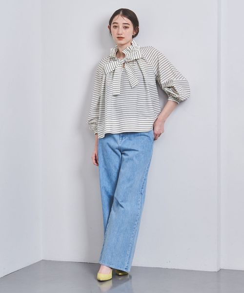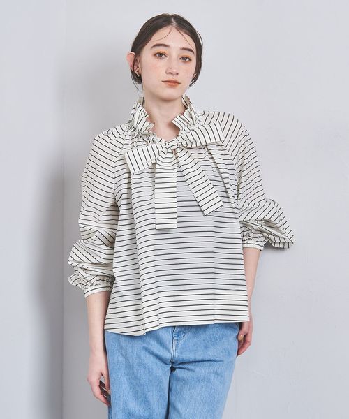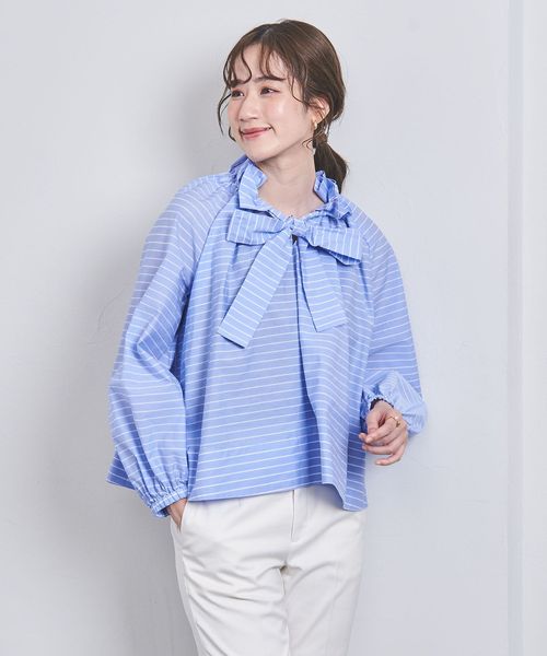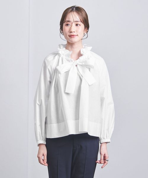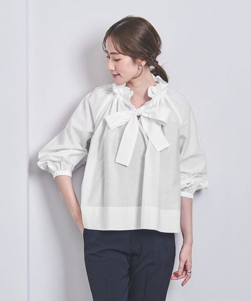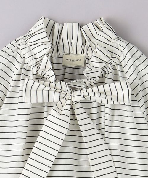 共地リボンで襟ぐり開き具合を調整し、ヘアスタイルやネックレスなどによってアレンジすることができます。