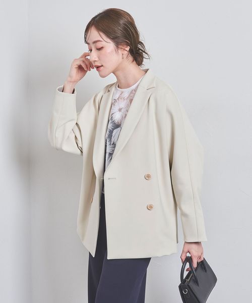 身頃から繋がったドルマンスリーブのシルエットが女性らしいブラウスジャケット。