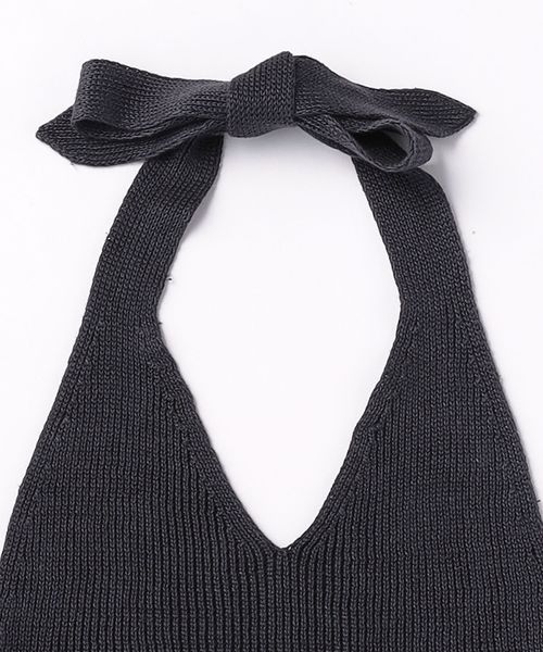 レイヤードを楽しむニット素材のホルターネックキャミソール。