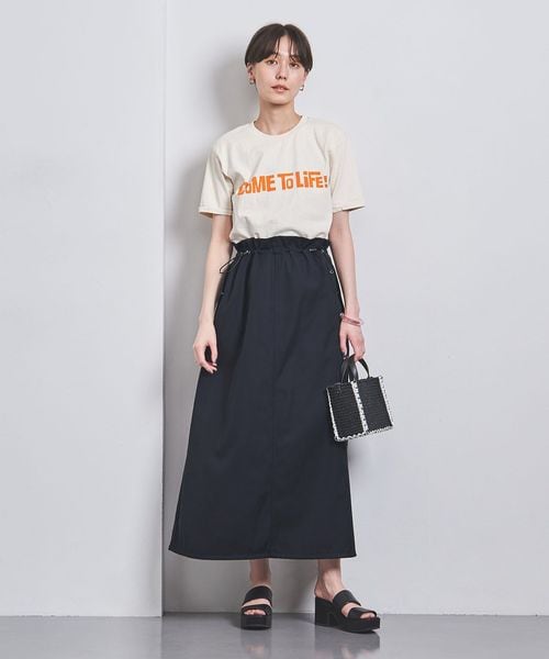 ウエストと裾に丸ゴム+ストッパーを施し、Aラインからバルーンシルエットにもアレンジできるスカート。
