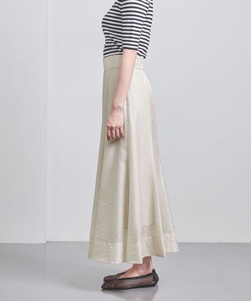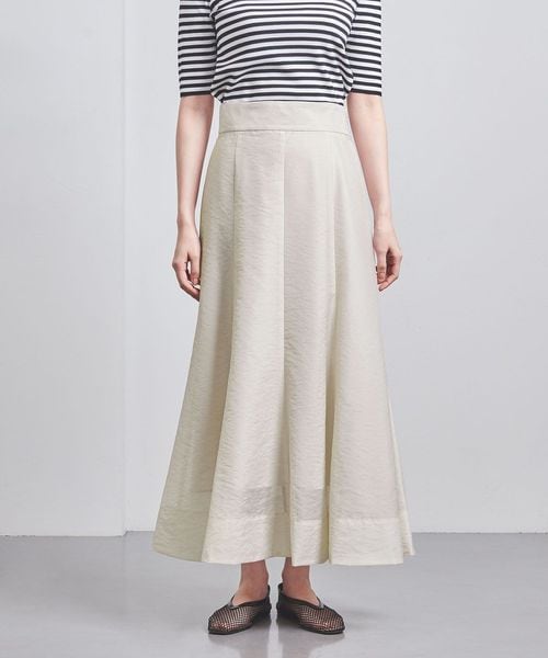 ヒップ下くらいまではややフィットし、裾に向けてフレア分量を入れたマーメイドシルエット。
