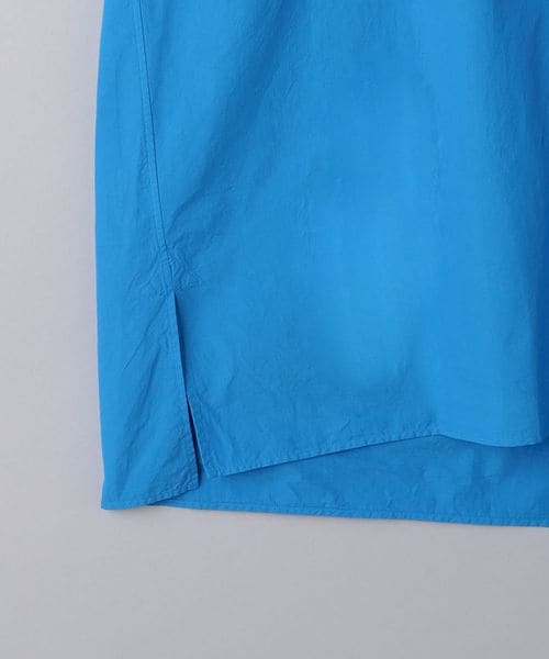 ゆったりとしたシルエットにサイドスリットが抜け感を演出するバンドカラーシャツ。