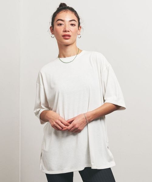ブラトップの上に羽織ってフィットネスシーンから海辺などのリゾートシーン、シンプルなTシャツとしてタウンユースにも適した一品です。