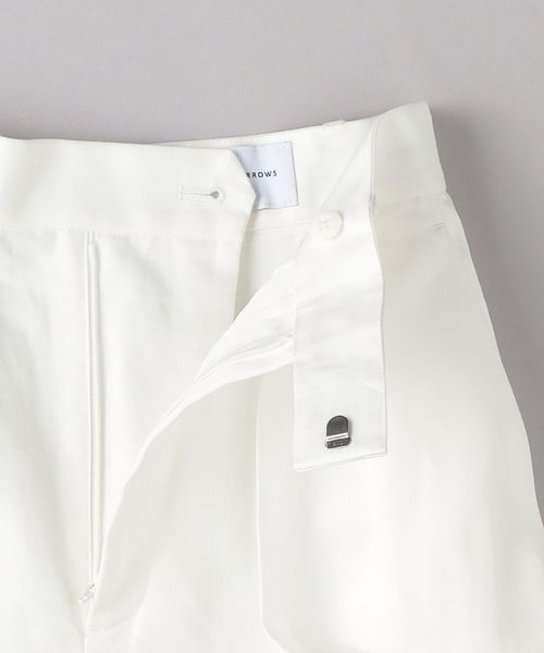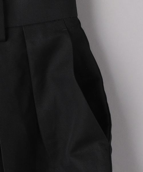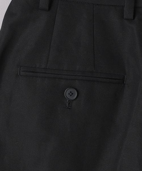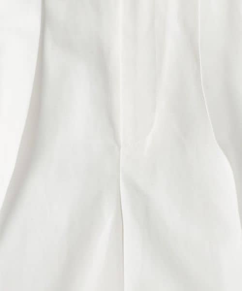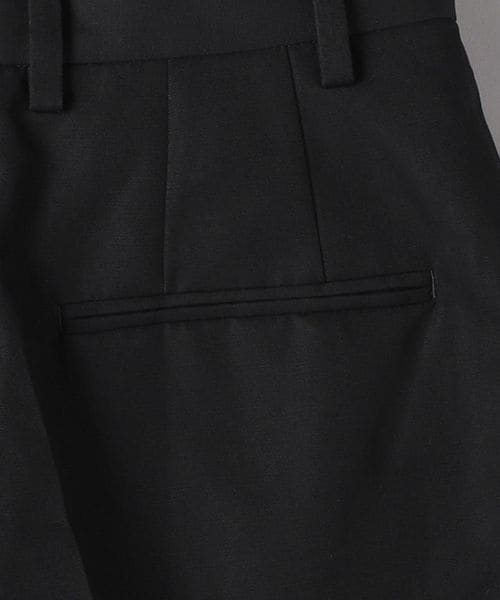 すっきりと見える内側折りのインタックディテールに太すぎないパンツのライン、膝が少しでる程度の丈などクラシカルな表情が魅力的な一着。