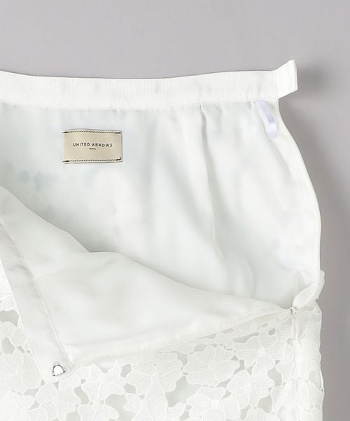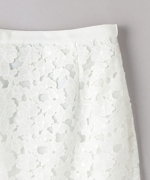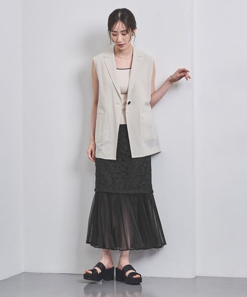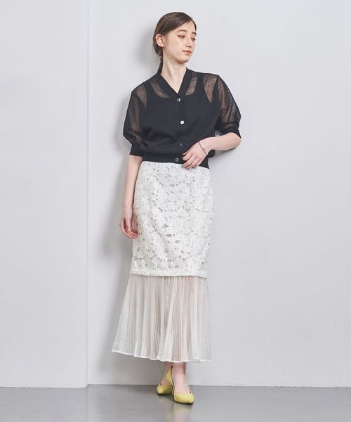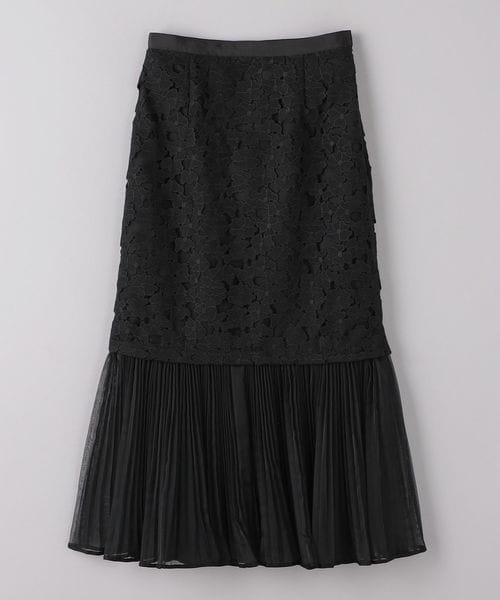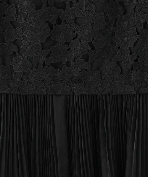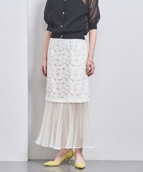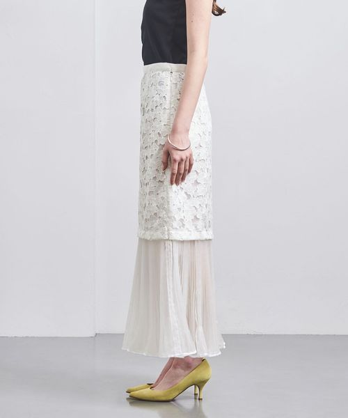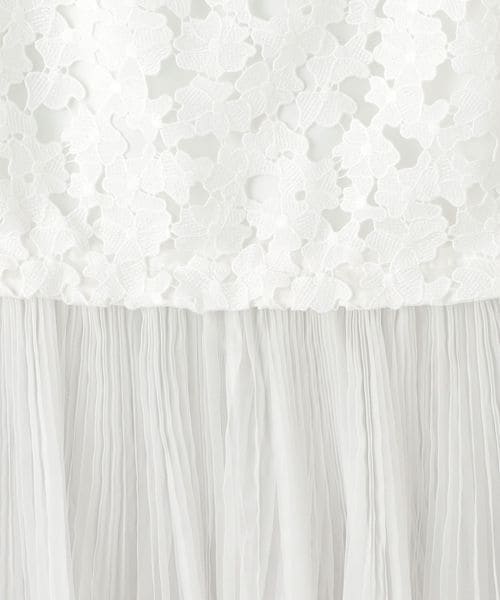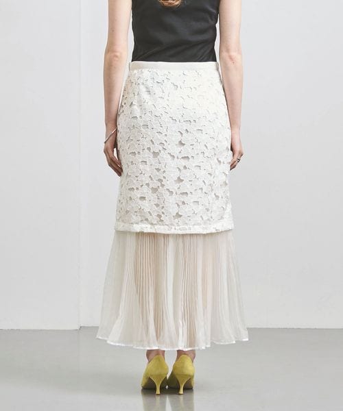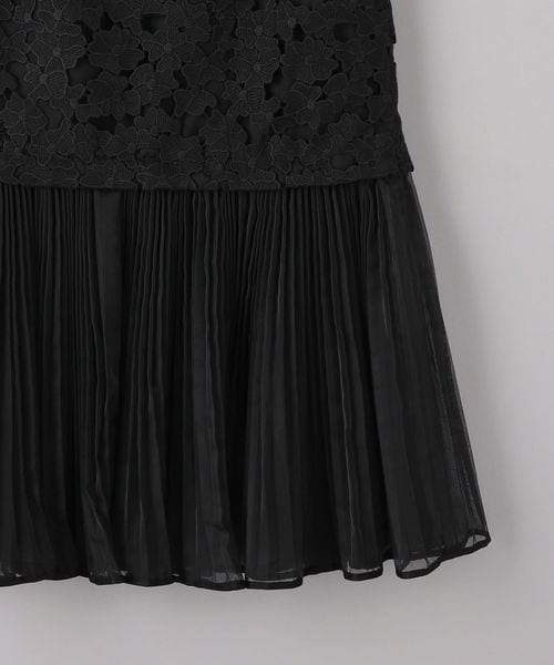 オーガンジー生地にプリーツ加工をした裾と、上部の凹凸感のあるエンブロイダリー生地の異素材ミックス。