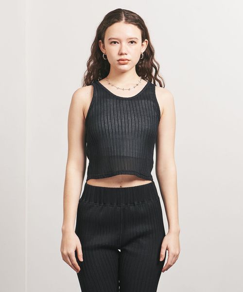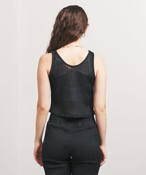 適度なハリ感とナチュラルなシアー感がポイントのノースリーブトップス。