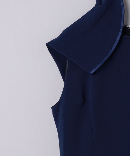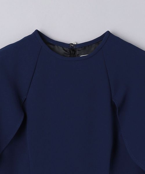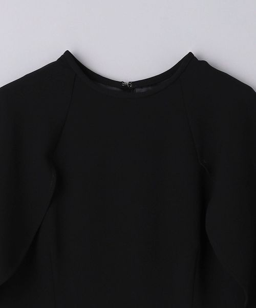 さりげなく二の腕をカバーしてくれるケープデザインの袖が上品なワンピースです。