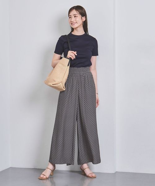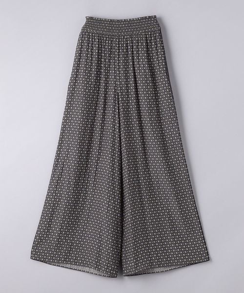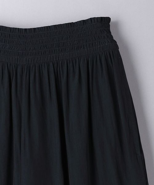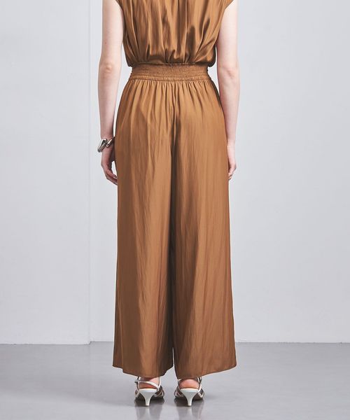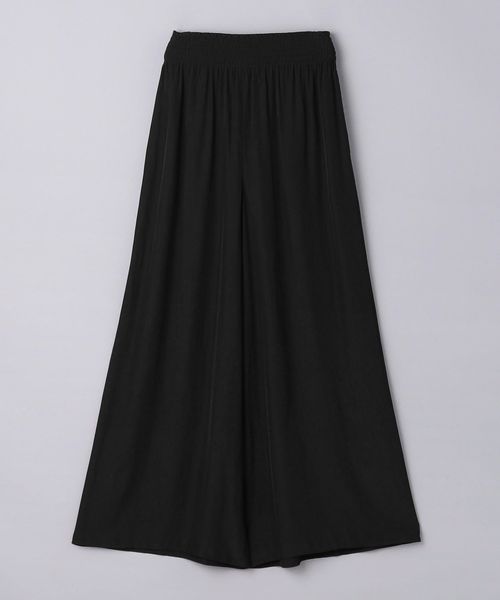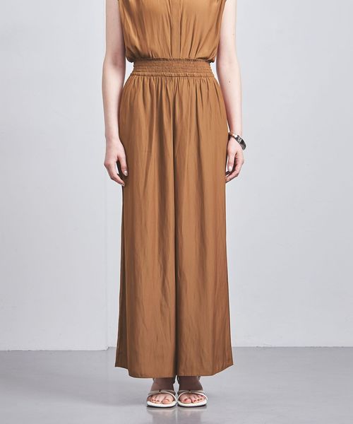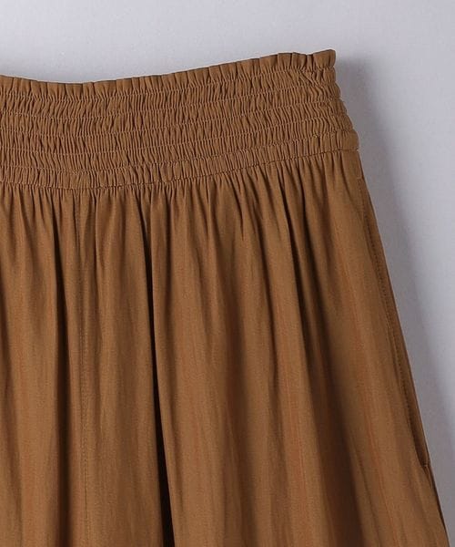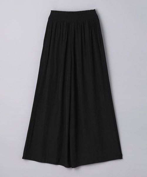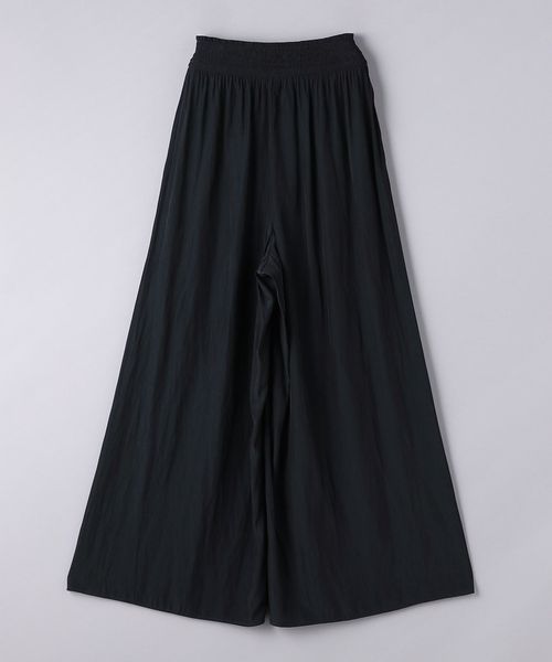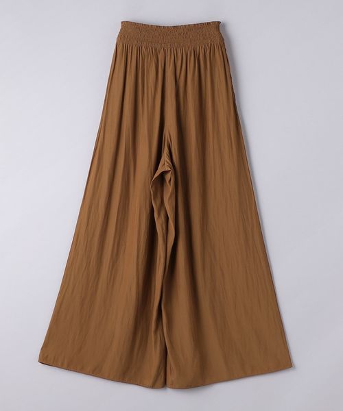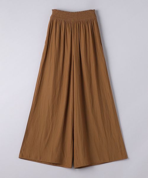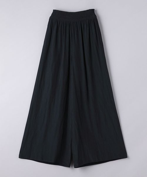 ウエストにシャーリングゴムでギャザーを多めに入れ、歩くたびに揺れるシルエットがエレガントなワイドパンツ。