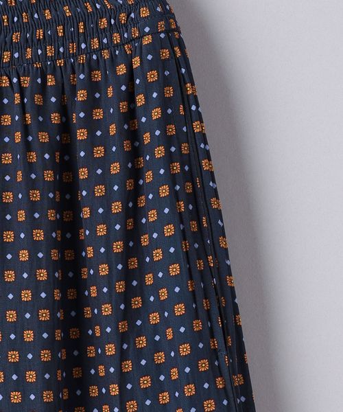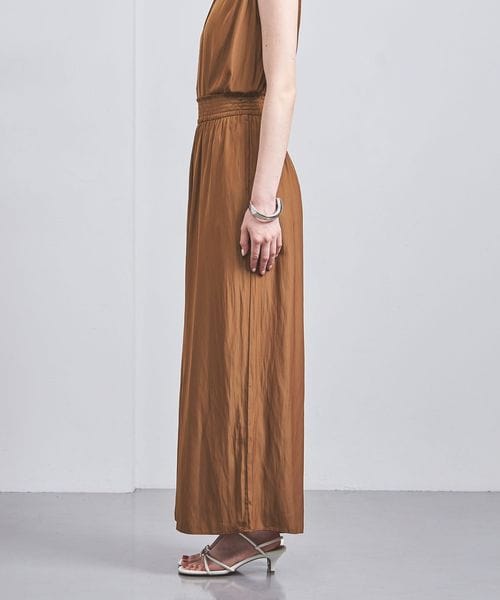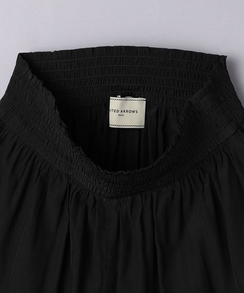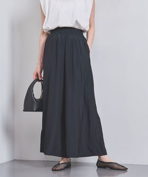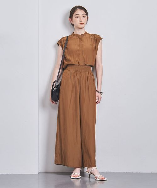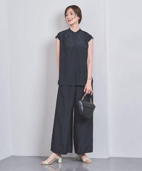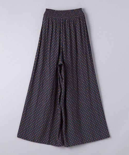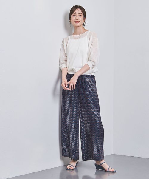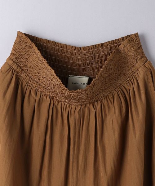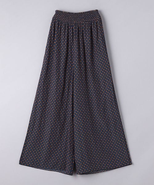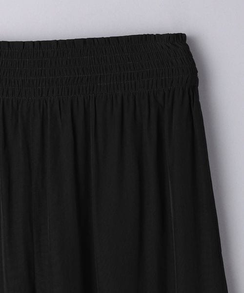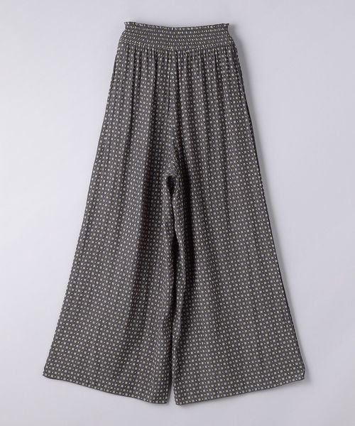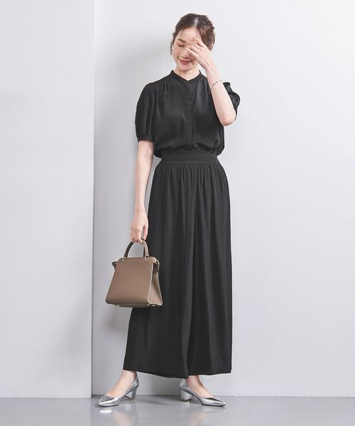 ウエストにシャーリングゴムでギャザーを多めに入れ、歩くたびに揺れるシルエットがエレガントなワイドパンツ。