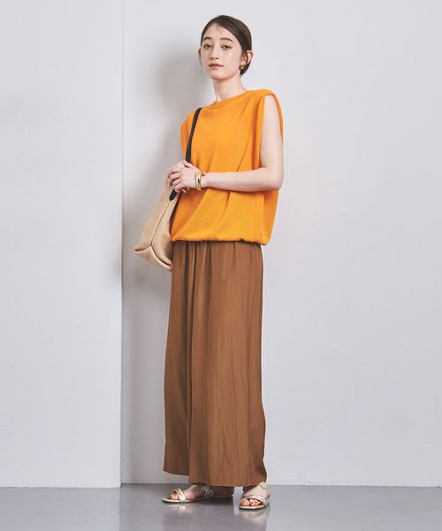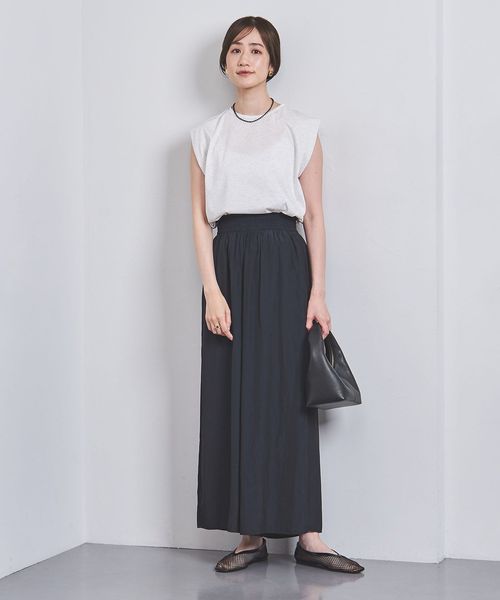 同シリーズのブラウスとのセット着用はもちろん、フィットシルエットのニットやショート丈のカットソーとの合わせもおすすめです。
