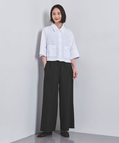 ワイドシルエットとウエストのゴム仕様でリラックスしたはき心地のパンツは、タウンだけでなくリゾートにもお使いいただけます。