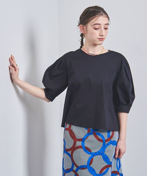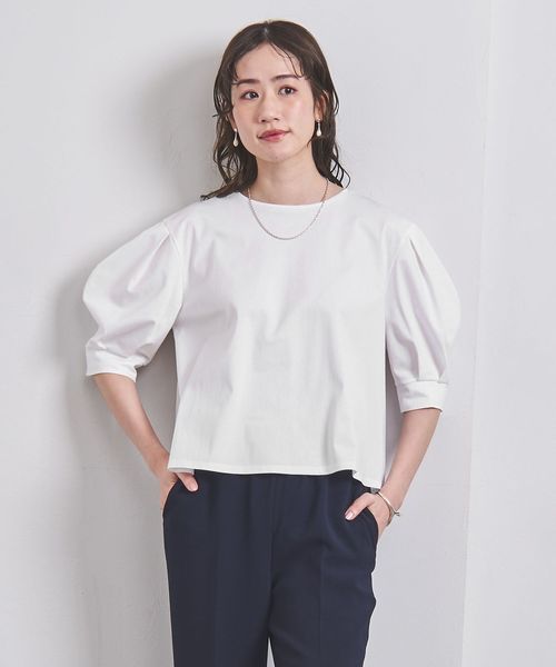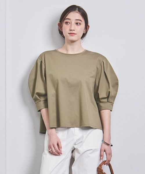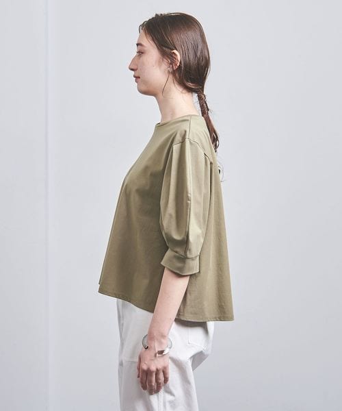適度な光沢感があり、カットソーながらブラウスのような上品さを持ち合わせた一着です。