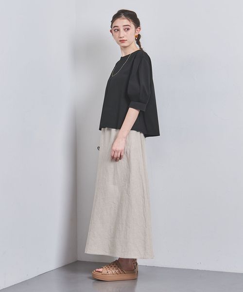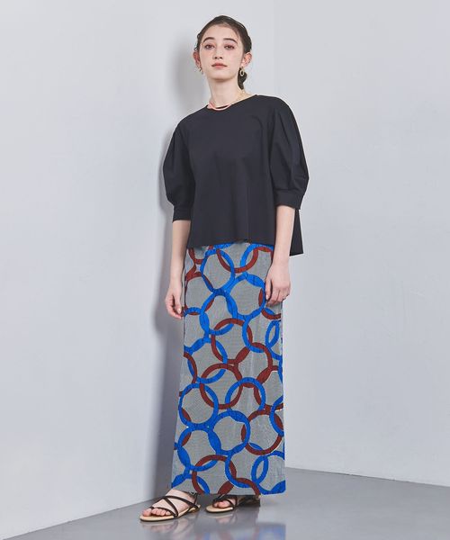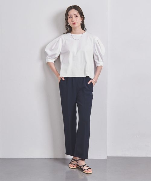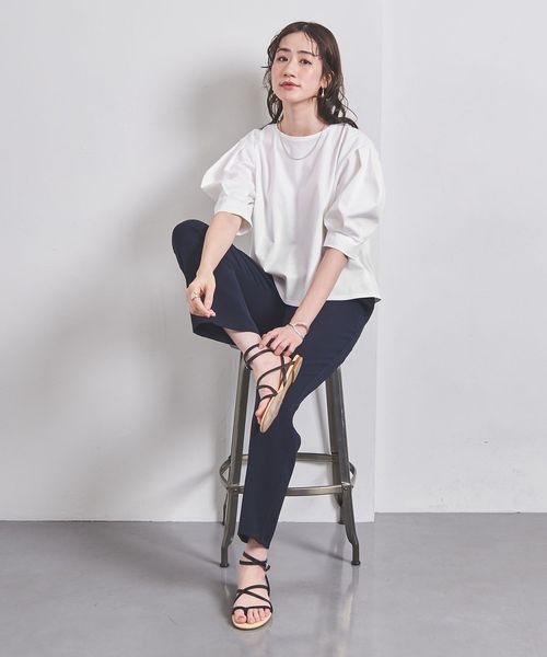 パンツスタイルやストレートスカートなどすっきりとしたシルエットのボトムスと好相性。